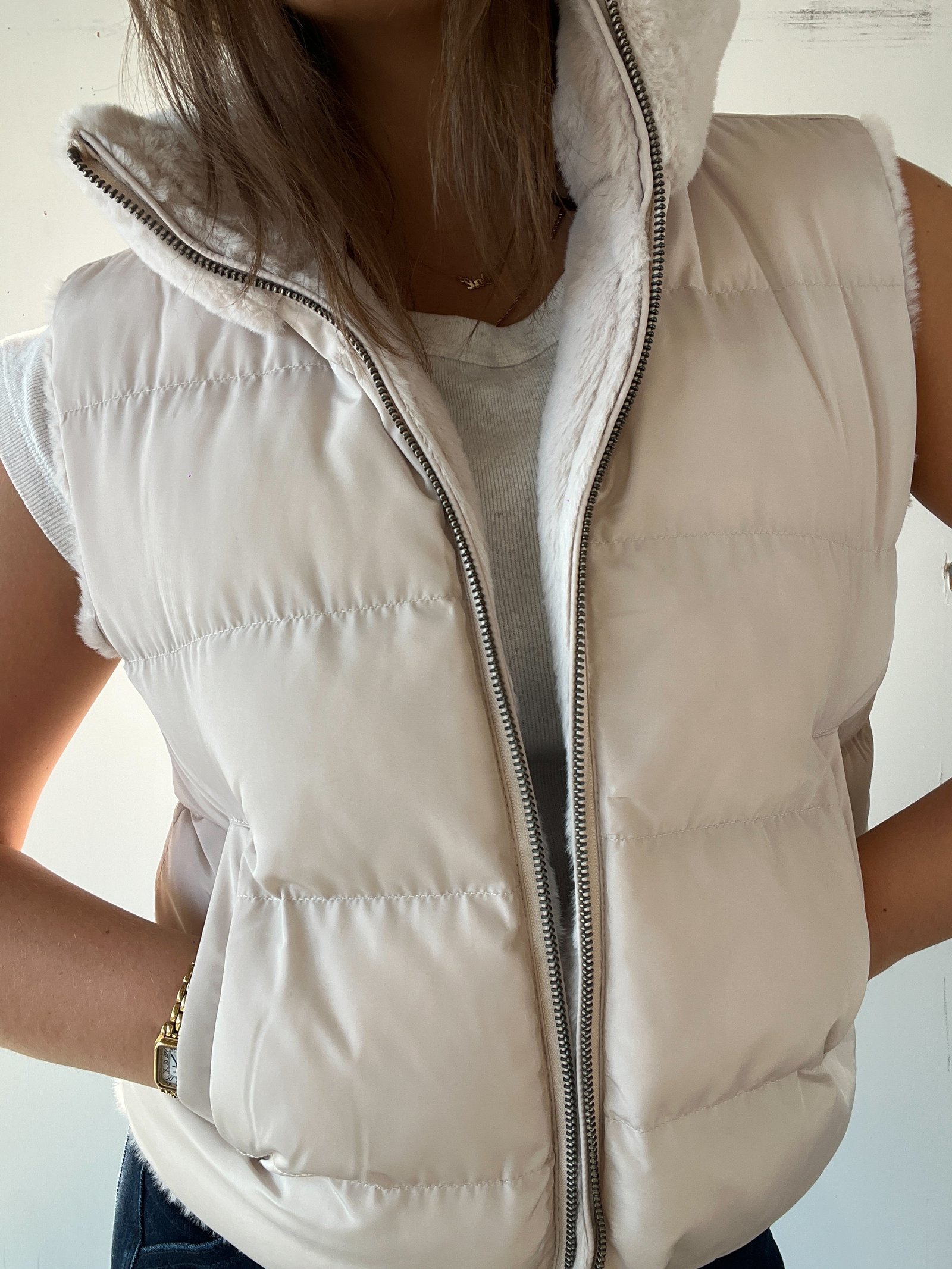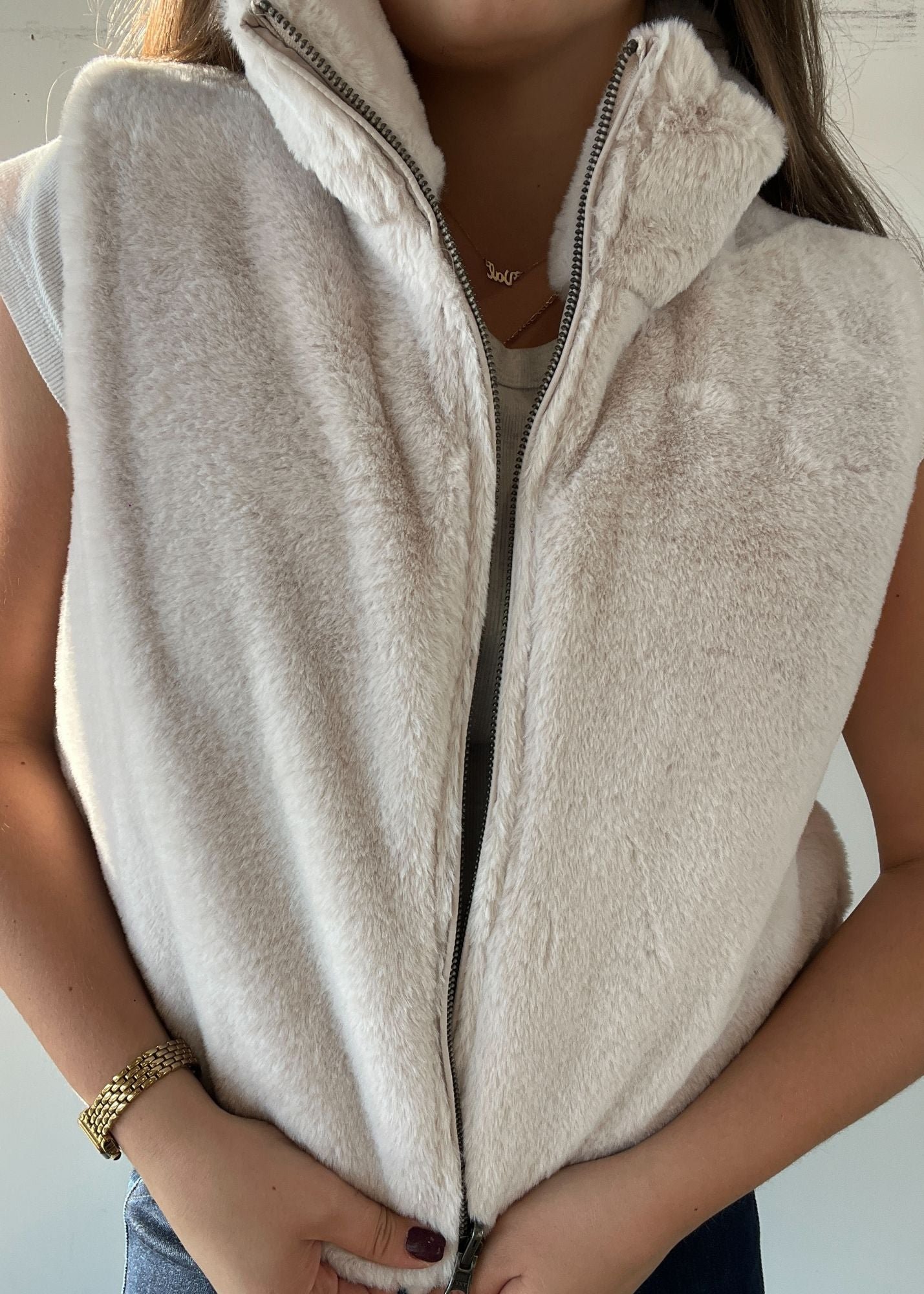 Elevate your wardrobe with the Macie Reversible Fur Vest, featuring a sleek zipper closure for secure wear. This versatile piece offers two distinct looks in one, allowing you to effortlessly switch between styles while enjoying the warmth and softness of premium fur. Expertly crafted, it combines both fashion and function, making it an essential layering piece for colder seasons.