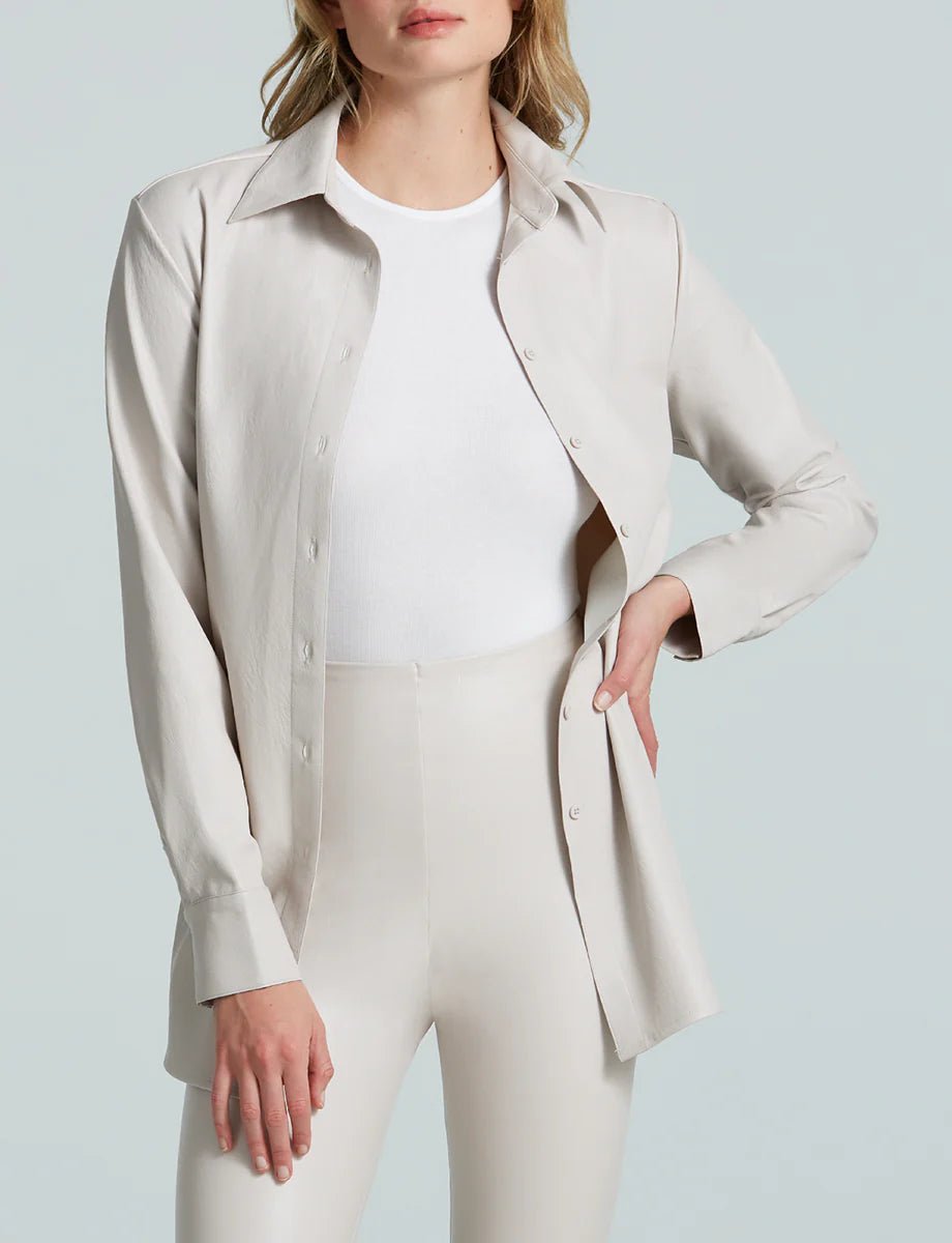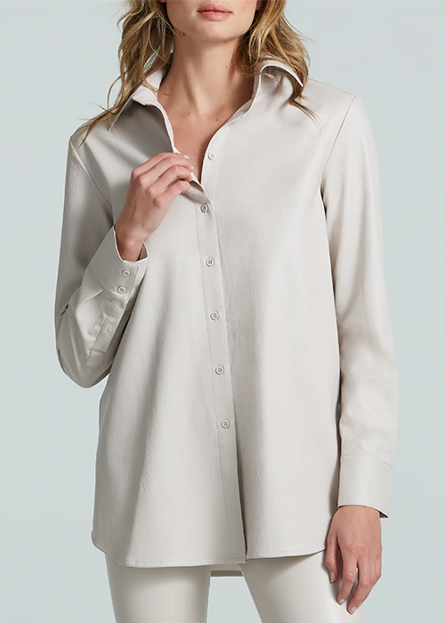 Commando’s Faux Leather Oversized Button Down Shirt is made from our fan-favorite faux leather and designed with an oversized fit for a more relaxed vibe. Pair this luxe faux leather button down shirt with bike shorts or your favorite leggings.