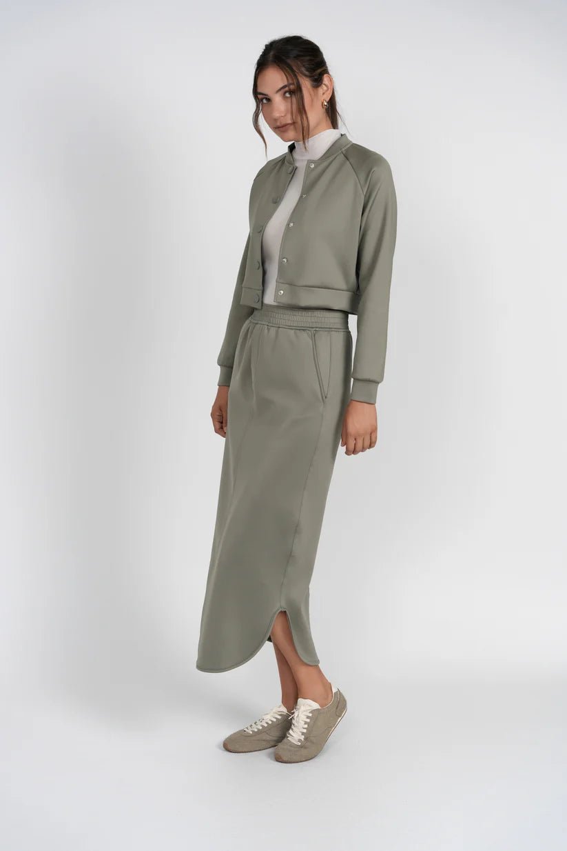 - The?Raven Bomber?is a sculptural take on the classic bomber, crafted from a structured scuba fabric that offers sleekness and shape.